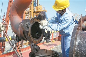 近日,针对夏季生产的实际情况,浙江自贸区30万吨油码头启用油气回收系统,避免在油轮作业过程中泄露油气而污染环境。图为油轮在完成卸油作业后,操作工把输油臂接口擦拭干净。 应红枫 摄