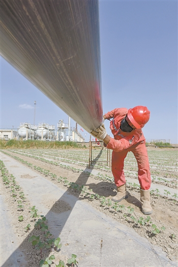 截至5月20日,中石化西北油田采油三厂10-2至三号联外输原油管道更换工程已安全施工31天。长达12公里的管线沿途经过棉田,为了不破坏棉苗,不损坏周边植被,该厂采用穿越棉田施工段管中管连续穿插、棉田内小支架支撑等举措。