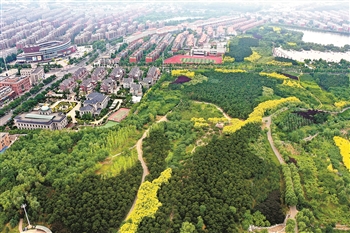 图为6月9日拍摄的河北省唐山市古冶区由采煤沉陷区改造而成的金山森林公园。