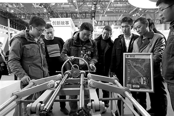 科技创新成果展上,王开库向参观人员介绍自己的创新项目。受访者供图