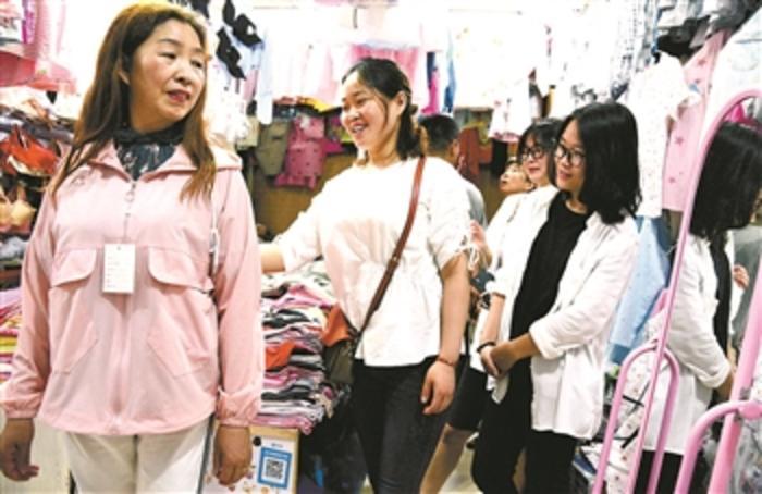 当日,江苏省镇江市和平路街道金江社区组织10多名有自主创业意向的居民来到一家小商品市场,向商铺创业人员学习“创业经”,并现场进行商品营销模拟体验。