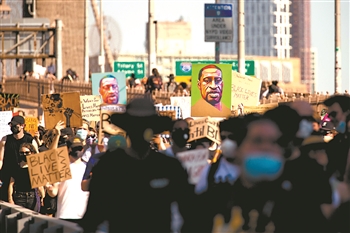 6月9日,人们在美国纽约街头参加抗议活动。美国明尼阿波利斯市警察暴力执法致非裔男子乔治·弗洛伊德死亡,由此引发的抗议活动当日在美国纽约继续进行。 新华社发 (郭克 摄)