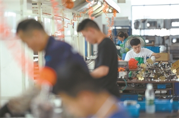 6月8日,义乌欧意电器生产车间,工人们在生产厨房器具。