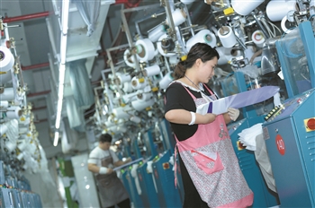 6月9日,义乌弘尚股份生产车间,纺织女工史春红正在岗位上忙碌。