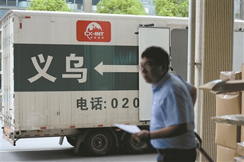 6月8日,义乌工业园欧意电器仓库外,一批批货物从这里发往全国各地。