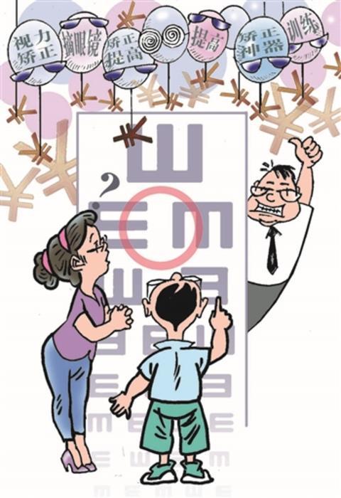 “3D训练”“5D热敷”“6D移动光学”“8D立体光学”……一些商家琢磨起商机来,简直是“才高八斗”。只可惜,这些名堂基本都是大忽悠。此前,国家卫健委办公厅联合多部门发布的《关于进一步规范儿童青少年近视矫正工作切实加强监管的通知》明确指出,在目前医疗技术条件下,近视不能治愈,同时禁止相关商家使用“近视治愈”“近视克星”等字样。了解了这一点,相信家长们也不会在这个问题上轻易交“智商税”了。近视这么多,预防是关键,与其花大钱治愈不了,不如帮孩子把好防御关,比如减少使用电子屏幕的时间、调整房间光线亮度、帮助孩子坚持正确读写姿势等。
