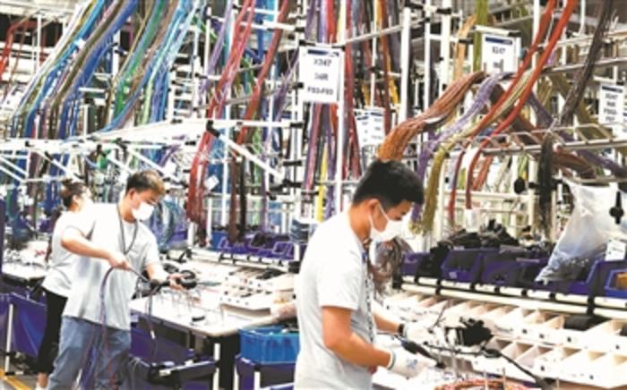 6月11日,河北三河市莱尼线束公司生产线上的员工正在加紧生产。此前,针对大量外地员工无法返岗情况,当地工会组织协同政府部门,多渠道发布招聘信息,动员周边乡镇村民就近就业。目前该公司已实现正常生产。本报通讯员 胡小龙 摄