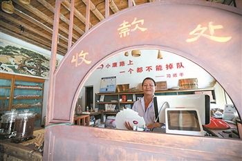 6月17日下午2:30,芦洋村村民陈步猛骑着摩托车赶到位于镇中心的嵩口供销新社,开门营业。今年57岁的陈步猛,每天除了打理家里的李果园,有半天时间要到供销新社上班。在这里,他和其他贫困户一样,每月可以领到860元工资。作为嵩口镇的网红景点和脱贫窗口,供销新社招聘了6个贫困户,负责打理门店、包装产品等工作。