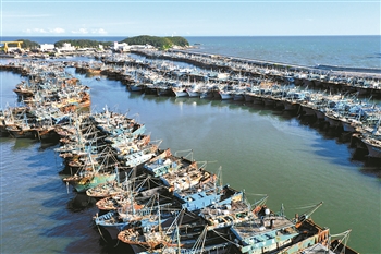 这是6月18日拍摄的福建省东山县陈城镇宫前村渔港内停泊的处于休渔期的渔船(无人机照片)。
