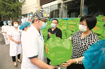 6月23日,北京市海淀区总工会来到北京马应龙长青肛肠医院,为奋战在抗疫一线的医务工作者送去200多份暑期清凉包。