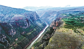 图为6月18日在贵州省威宁彝族回族苗族自治县斗古镇拍摄的牛栏江,中关村就坐落在右岸的悬崖顶上(无人机照片)。 新华社记者 杨文斌 摄
