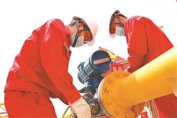图为党员技术专家在新疆库车市天然气门站检测流量计运行状况。(张瑛 摄)