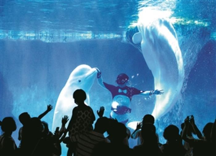 6月25日,市民在武汉海昌极地海洋公园参观游玩。