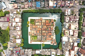 逆水流龟村堡位于广东东莞虎门镇白沙社区,为明末清初年间虎门白沙人郑瑜所建,距今已有370多年历史。占地面积6889平方米的村堡四周环水,护村河宽18米,是典型的军事防御村堡。该村堡因形制似龟,逆水而上,故称逆水流龟。村堡前有龟首楼,后有龟尾吊桥,四周碉楼为龟脚,是古代建筑仿生学的典型。 新华社记者 刘大伟 摄