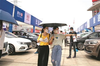 当日,武汉大型室外车展——武汉端午国际汽车节在武汉客厅文化博览中心前开展,吸引市民前来参观选购。