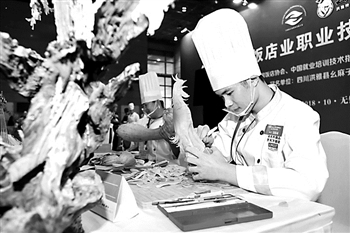 由中国饭店协会、中国就业培训技术指导中心、中国财贸轻纺烟草工会联合举办的第八届全国饭店业职业技能竞赛目前已进入报名阶段,并将于近期进行选拔赛。本次竞赛涉及中式烹调师、中式面点师、餐厅服务员、前厅服务员4个职业。据介绍,该竞赛每两年举办一次,目前已成功举办了七届。图为第七届全国决赛现场。