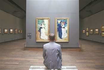 6月23日,一名参观者在法国巴黎奥赛美术馆欣赏雷诺阿的名画。