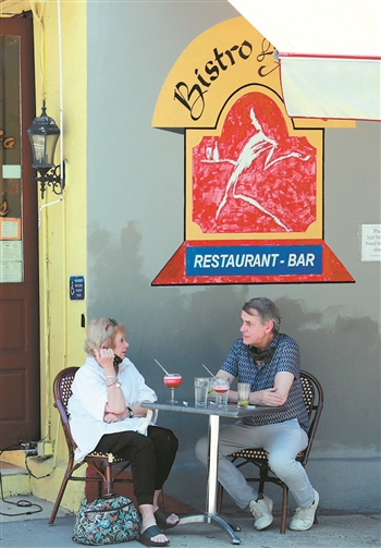 6月22日,人们在美国纽约一家餐厅的户外餐区就餐。
