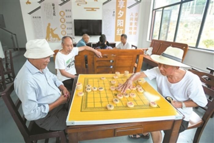 6月23日,在长沙市岳麓区岳麓街道左家垅村综合文化服务中心,居民在棋牌室下棋。