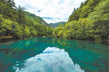 图为日前拍摄的四川省阿坝九寨沟风景区内的“五花海”。近年来,九寨沟持续推进造林、封山育林、沙化土地治理等多项生态涵养工程,维持了自然遗产地的原真性和完整性。