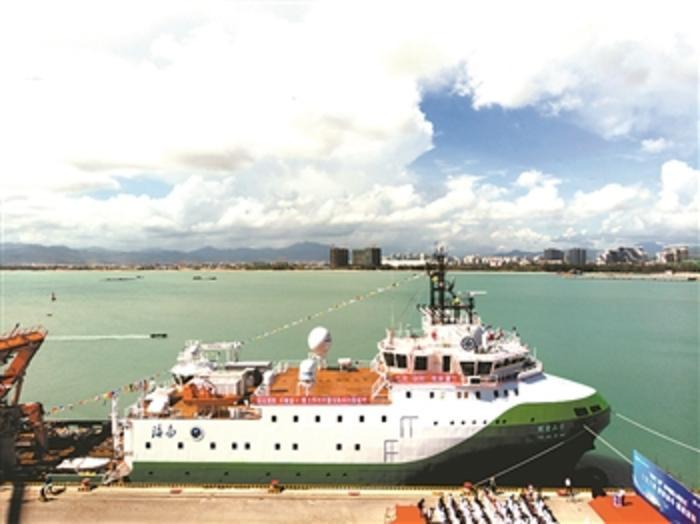 6月28日,我国首艘全数配备国产化科考作业设备的载人潜水器支持保障母船——“探索二号”船抵达三亚崖州湾科技城南山港,海南深海产业发展再添利器。新华社记者 张丽芸 摄