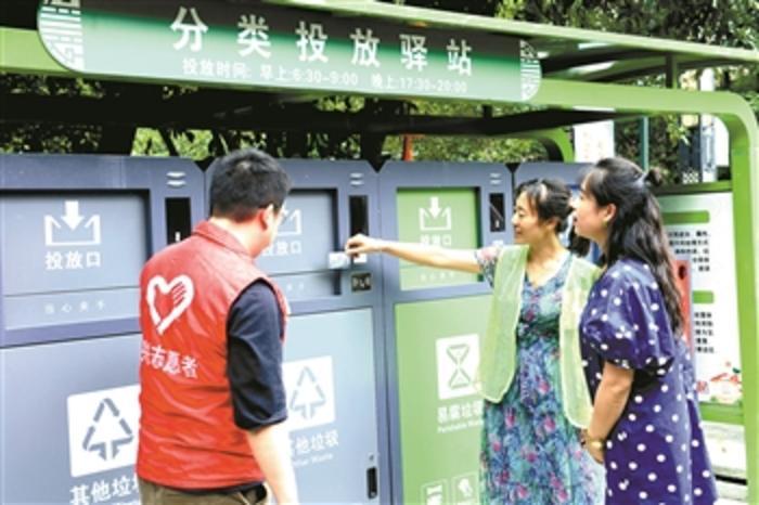 今年以来,浙江省湖州市在居民小区探索实施“减桶并点”工作,将原有分散的垃圾桶、垃圾投放点合并,进一步引导居民精准分类。