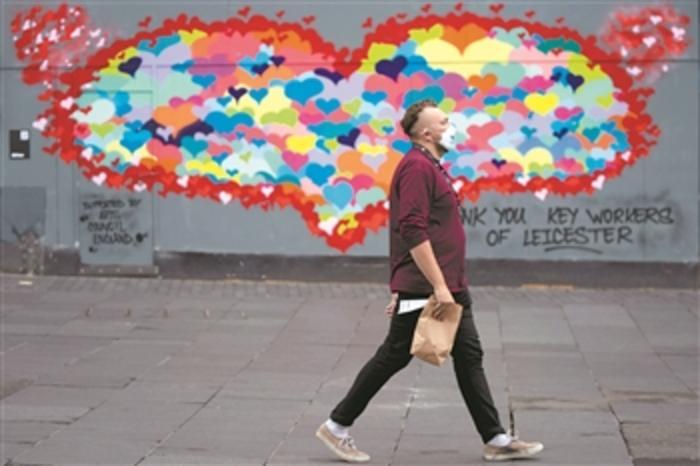 7月1日,一名男子走在英国英格兰中部城市莱斯特街头。