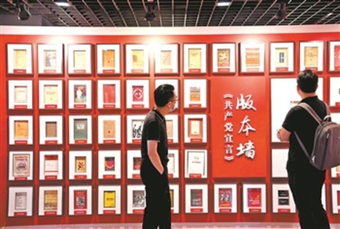图为6月24日,在上海市档案馆外滩馆,人们在参观“真理之甘 信仰之源——纪念陈望道首译《共产党宣言》中文全译本100周年主题展”。