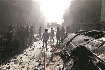 这是5月22日在巴基斯坦卡拉奇拍摄的飞机坠毁现场。