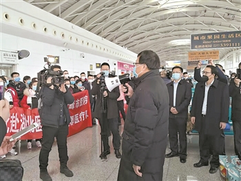 内蒙古自治区总工会送首批援助湖北医疗队的139名英雄出征。