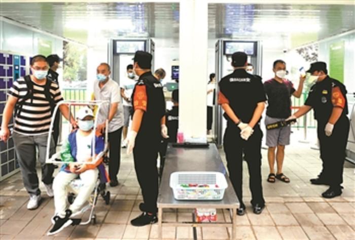 7月12日,人们走过升级后的北京儿童医院安检通道。