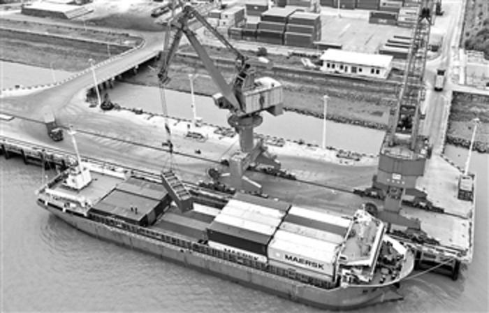 7月12日,浙江台州,一艘外贸货轮正在温岭龙门港码头吊装集装箱。去年以来,台州市鼓励企业物流运输“弃陆走水”,加密海上“穿梭巴士”,降低企业物流成本。刘振清 摄/视觉中国