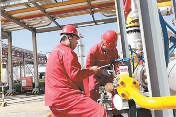 炎炎夏日,陕西延长石油采气二厂青阳岔净化厂值班人员正在挥汗如雨埋头苦干。黄冰 摄
