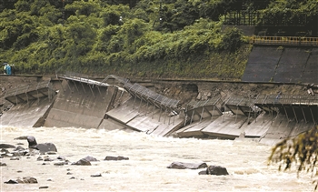 上图:7月14日,在日本岐阜县下吕市拍摄的一段因河流水位上涨而崩塌的公路。7月初以来日本九州地区持续遭遇暴雨天气,截至目前已导致75人死亡、14人失踪。 新华社/共同社