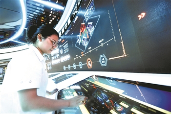 7月16日,浙江兆丰机电工作人员在工厂数字大脑中心通过5G技术观看汽车轮毂轴承自动化生产设备生产产品及检测分析过程。