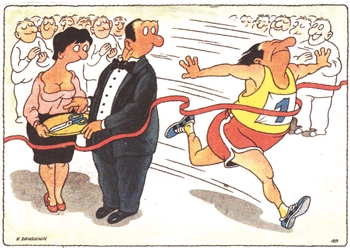 俄罗斯漫画家瓦伦丁·德鲁兹宁出生于1951年,自乌克兰顿涅茨克大学艺术学院毕业。1972年开始创作漫画并移居莫斯科,成为多家媒体和画廊的撰稿人。瓦伦丁的漫画人物造型最大特点是“有眼无珠”,笔下的锯齿线简约有力,其独特的表现力深深地感染着本国和欧洲读者,出版过16部漫画集,在多国举办20余次个人漫画展。