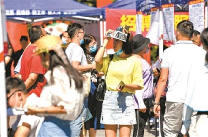 7月19日,求职者在招聘会现场寻找工作岗位。当日,宁夏银川市金凤区举行“普惠职工·阳光就业·工会行动”公益性专场招聘会,139家用人单位现场提供近2500个就业岗位,吸引众多求职者前来咨询应聘。