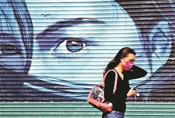 7月18日,在墨西哥首都墨西哥城,一名女子戴着口罩出行。墨西哥卫生部18日晚公布的新冠疫情数据显示,过去24小时该国新增新冠确诊病例7615例,累计确诊病例338913例。
