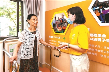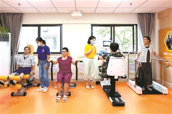 左图:7月20日,社区健康师在指导老人进行康复训练。