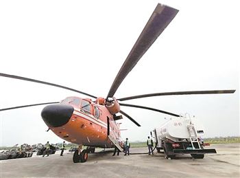 受连续强降雨影响,湖北阳新富河出现溃口,6500多亩农田被淹。7月15日,湖北航油突击队赶赴阳新,为3架抗洪救灾直升机供油。