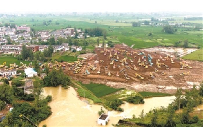7月27日,安徽省阜阳市颖上县蓄洪区戴家湖一涵闸闸门破损,解放军战士、民兵、水利专家等上千人和上百台挖掘机紧张作业,修筑新堤坝,处理险情。本报记者 王伟伟 摄