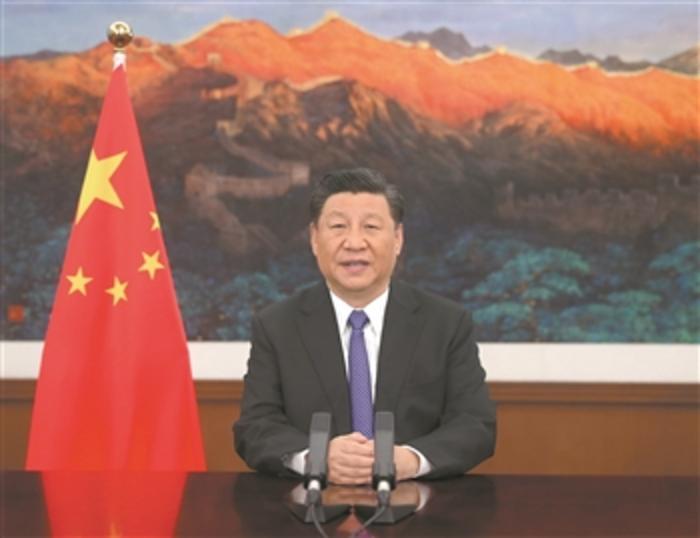7月28日,国家主席习近平在亚洲基础设施投资银行第五届理事会年会视频会议开幕式上致辞。新华社记者 鞠鹏 摄
