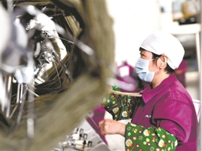 7月28日,参赛职工在藏毯绒纺技能赛事现场进行络筒技能比赛。当日,西宁市第六届职工职业技能大赛进行藏毯绒纺技能比赛,来自西宁市纺织行业的80余名在职职工参赛。