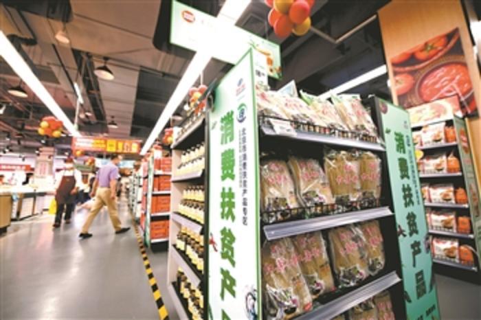 当日,以销售扶贫产品为特色的首农物美扶贫超市在北京市消费扶贫双创中心开业。据介绍,超市内设置扶贫商品专柜面积1200平方米,主要销售包括北京市扶贫支援的7省区90个县级地区在内的扶贫产品近1000种。