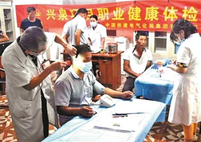7月25日至27日,中铁建电气化局三公司兴泉铁路项目部组织施工沿线的职工进行职业卫生健康体检。此外,项目部还请医生向大家讲解保健和应急处理等知识,提高工人预防职业病意识和应急处置能力。马浩 田琦 摄