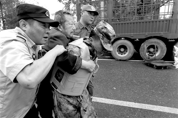 7月20日,安徽省六安市固镇镇,一名民警正和当地民兵和救援队员对受困群众进行转移。连日来,受强降雨影响,安徽多条河流超警戒水位,不少乡镇被洪水围困。险情发生后 ,处处都能看到公安民警为保证人民的生命财产安全,奋战在抗洪抢险一线的身影。