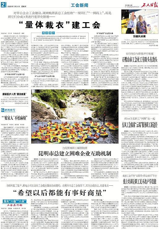 “分门别类,并非另眼看待,而是希望用‘因企制宜’的方法,促使全县非公企业工会应建尽建,且能发挥更大作用。”桃源县总工会党组书记、副主席龙艳慧说。