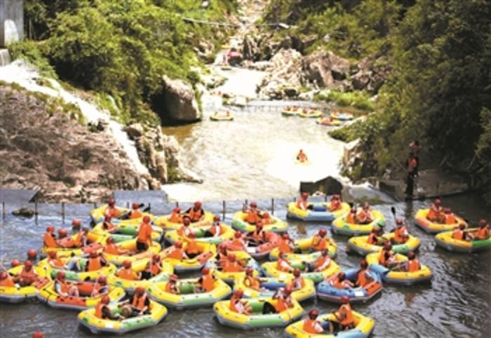 7月28日,来自全国各地的50多名援鄂抗疫医护人员在海南五指山市红峡谷文化旅游风景区体验丛林漂流,调理身心,放松心情。本报通讯员 张进刚 摄