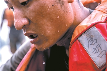 7月30日,安徽省霍邱县冯瓴乡民生村,淠左沟渠堤坝上,71集团军某旅的一名战士正在休息。这段堤坝地势低洼,再加上闷热的天气,战士们大汗淋漓。受强降雨影响,这里发生了多处管涌、塌方等险情。该旅接到任务后,于23日来到民生村,已经连续奋战了一个星期。