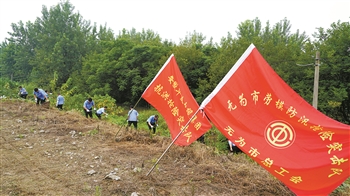 7月14日下午,在长江武汉段武金堤上,中建三局三公司退伍老兵组成的巡堤尖刀连,冒着高温酷暑巡堤。